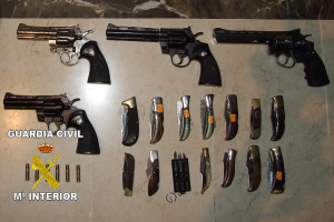 Entre los objetos recuperados hay televisiones, ordenadores, relojes, joyas yropa etiquetada, presumiblemente procedente de robo; pero lo que más ha llamado la atención de los agentes han sido tres catanas, tres revólveres de fogueo, una pistola de aire comprimido y trece navajas, cuya procedencia también se está investigando.