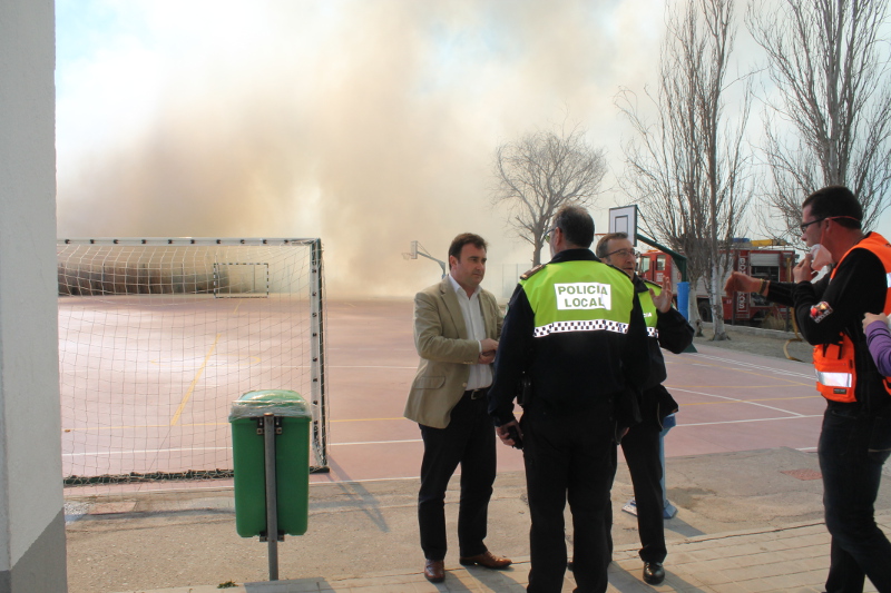 Unos minutos antes de las doce del mediodía, se declaraba un incendio junto a dos centros educativos de la Villa, el IES Nazarí y el colegio público Segalvina, en una zona de cañas de una finca particular.