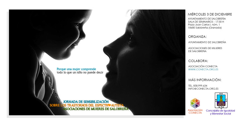 El Área de igualdad del Ayuntamiento de Salobreña y la Asociación CONECTA han organizado para el próximo miércoles, 3 de diciembre, una Jornada de sensibilización sobre los trastornos del espectro autista a la que están invitados todos los colectivos y asociaciones del Municipio, especialmente las de mujeres. Se trata de una oportunidad para conocer cómo es el día a día de los niños con autismo y sus familias, ya que es fundamental contar con el apoyo de la comunidad en la que estos niños crecen y se desarrollan.