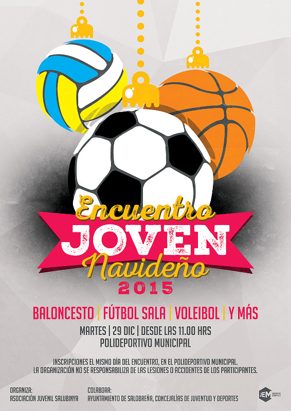 El próximo día 29 de Diciembre se celebrará en el Polideportivo Municipal de Salobreña el “I Encuentro joven navideño” organizado por la Asociación Juvenil Salubinya en colaboración con las áreas de Juventud y Deportes del Ayuntamiento de Salobreña.