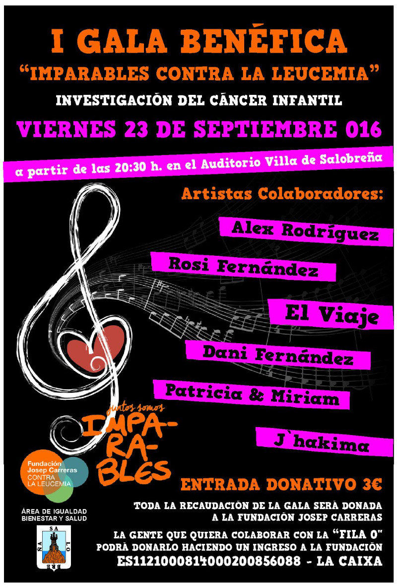 gala_invest_leucemia_800Artistas locales se unen el próximo viernes día 23 en una Gala benéfica organizada por la concejalía de Bienestar Social y salud del Ayuntamiento de Salobreña con motivo de la celebración del Día mundial contra la mieloide crónica que se conmemora el día anterior, jueves 22 de octubre.