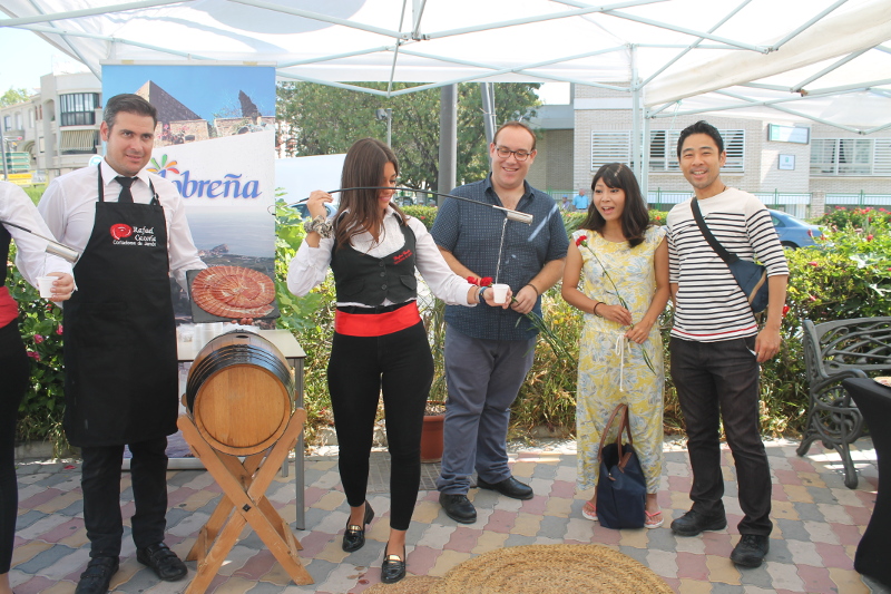 El acto institucional, como cada año, ha tenido lugar a las puertas de la Oficina de Turismo de la plaza de Goya sobre las 12 horas, donde se ha ofrecido una copa de vino y una tapa de jamón a los visitantes, gracias a la colaboración de Genotur, asociación organizadora del Concurso de Cortadores de Jamón que se celebrará en las próximas fiestas patronales.