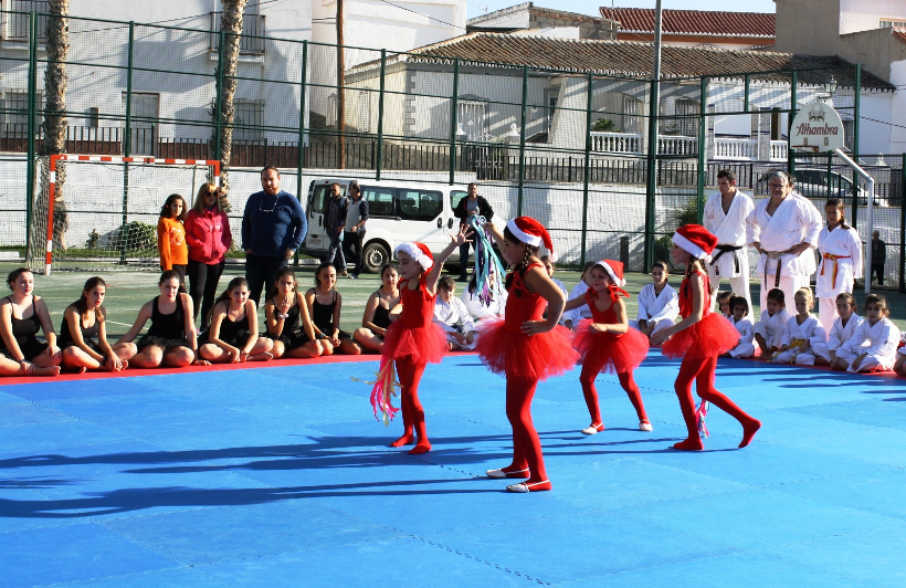 En el polideportivo de Lobres se montó un tapiz para la actuación de las alumnas de gimnasia rítmica, que a su vez sirvió como tatami para la exhibición de los practicantes de kárate. En una dinámica puesta en escena, ambas escuelas se han ido alternando para mostrar sus respectivas coreografías y katas a los asistentes. Entre las primeras, algunas han tenido un carácter muy navideño, tanto en la música como en la vestimenta. Posteriormente ha tenido lugar la actividad de los alumnos de la Escuela de Ajedrez.