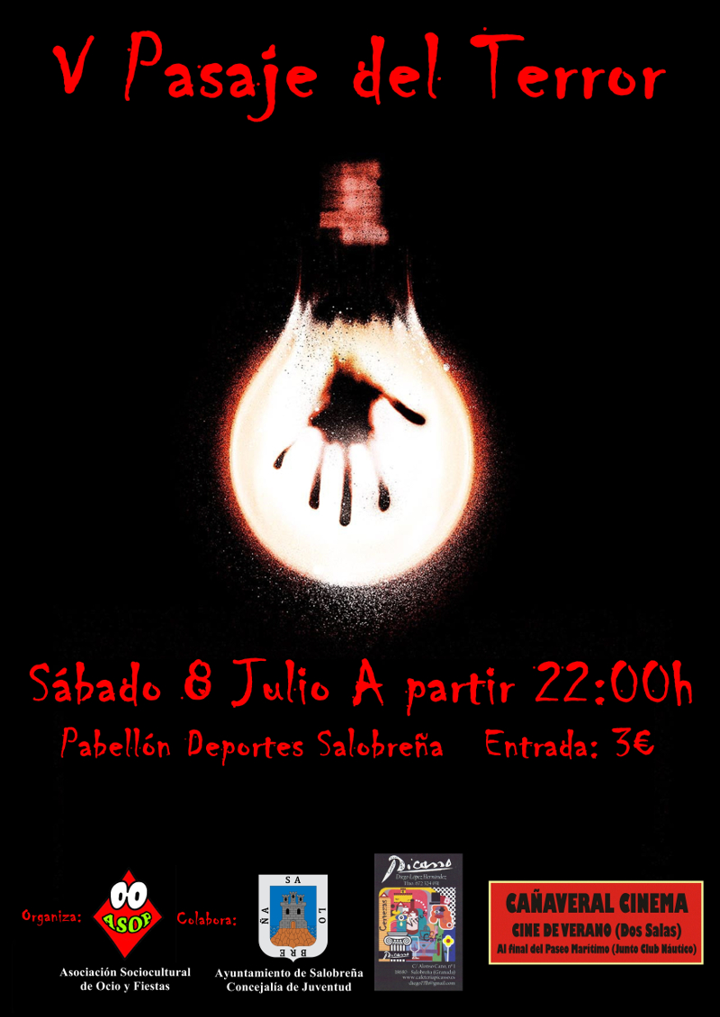 V Pasaje SalobreñaComo ya viene siendo tradición en nuestro municipio, este verano volveremos a contar con la realización de un nuevo pasaje del terror, siendo una de las actividades veraniegas que más gusta entre nuestros jóvenes.
