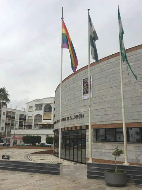 El Ayuntamiento de Salobreña se ha adherido a la conmemoración del Día Internacional del Orgullo LGTB izando esta mañana la bandera arco iris en la plaza del Consistorio.
