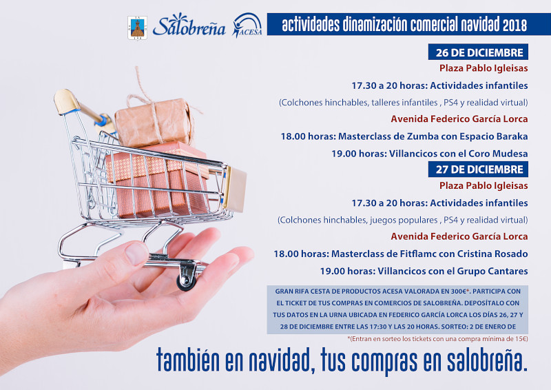 Podrá participar en el sorteo toda persona que haga compras, por valor superior a quince euros, en los comercios de Salobreña los días 26, 27 y 28 de diciembre y deposite el ticket en la urna ubicada en la Calle Federico García Lorca. El sorteo tendrá lugar el 2 de enero.