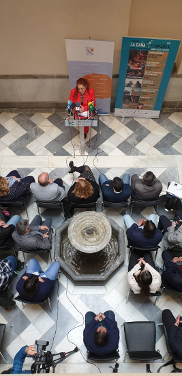El presidente de Mancomunidad, Sergio García, junto al presidente de la Diputación, José Entrena, Diputada de cultura y las alcaldesas y concejalas de los tres municipios participantes, han presidido esta mañana la presentación de la segunda edición del Festival de la Caña Flamenca en la sede de la institución comarcal.