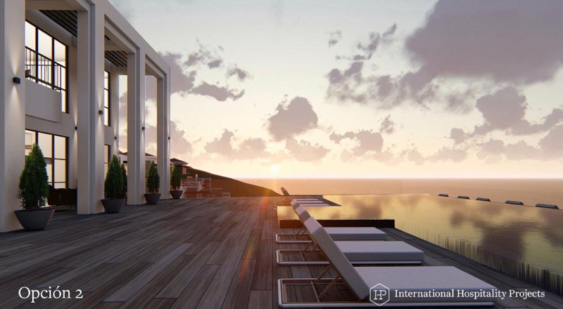El hotel, de cuatro o cinco estrellas, se plantea como un edificio escalonado con dos partes diferenciadas: la zona oeste con 27 habitaciones tipo junior suite además del restaurante y zonas comunitarias y piscina; y la parte este que alberga el resto de habitaciones aterrazadas con cubiertas ajardinadas para reducir el impacto visual.