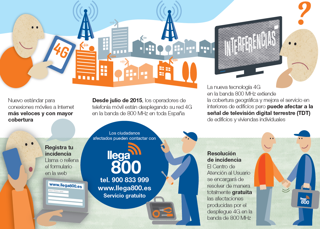 Llega800 es la entidad encargada de garantizar la compatibilidad de este servicio 4G con la TDT en la banda de 800MHz
