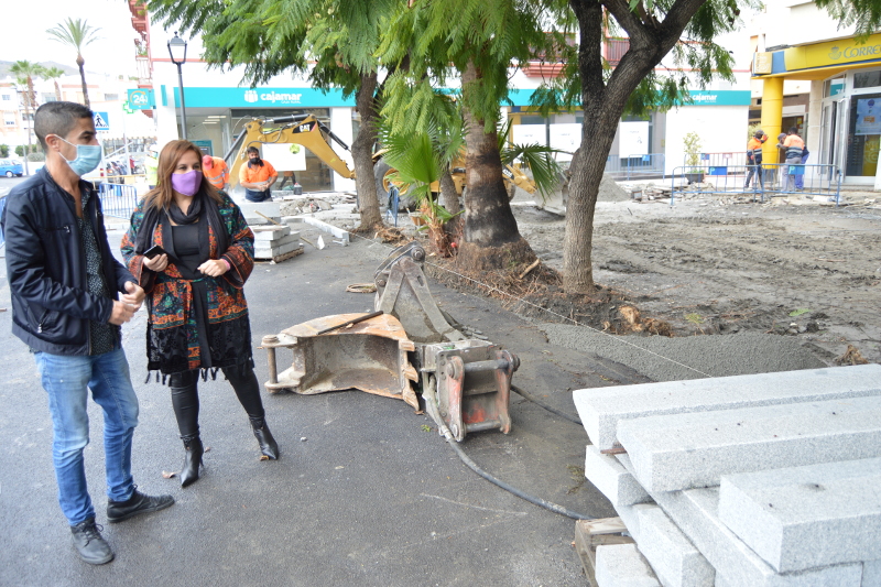 El área de Obras y Mantenimiento del Ayuntamiento de Salobreña está ejecutando obras en la plaza situada frente a la oficina de Correos en la avenida Antonio Machado, unos trabajos que vienen a reparar el mal estado en que se encontraba esta zona.