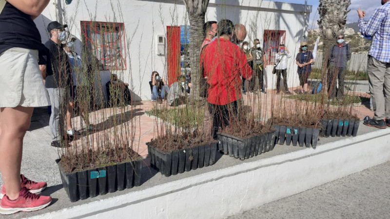 Si bien hay más de noventa personas apuntadas al programa de voluntariado ambiental del Ayuntamiento, en este caso han asistido solo una veintena, con el fin de no generar grandes aglomeraciones. Se han dividido en pequeños grupos de cinco o seis voluntarios para plantar los 200 tarajes.