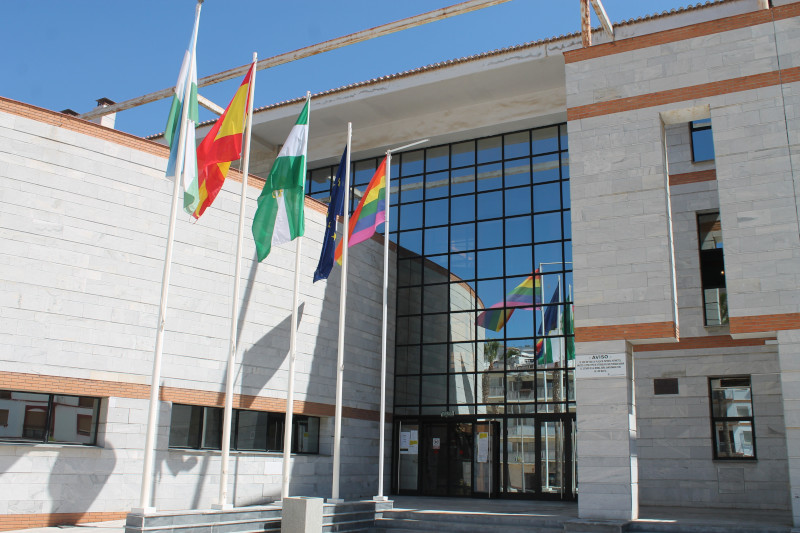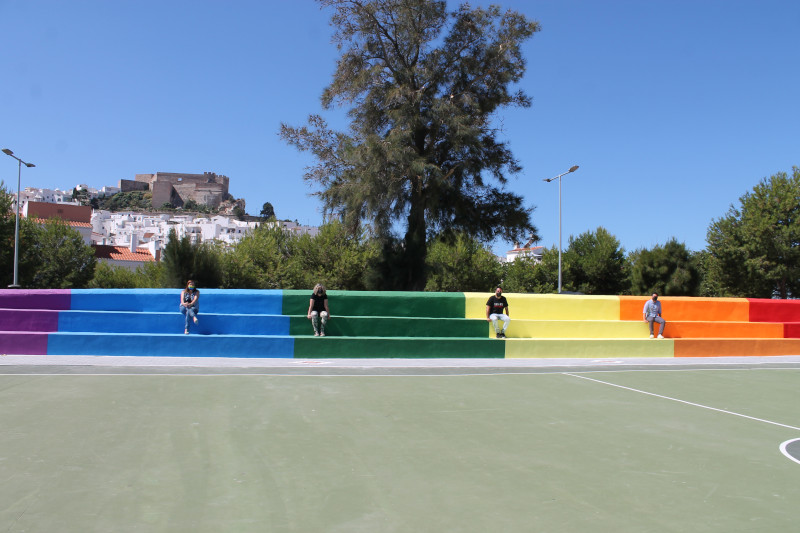 Además de la colocación de la bandera arcoiris en la fachada del Consistorio, se han pintado con los colores identificativos las gradas del nuevo espacio de ocio situado frente a la Casa Roja y esta noche, las letras de “Salobreña” en la rotonda de entrada al municipio, se iluminarán también con luces multicolor.
