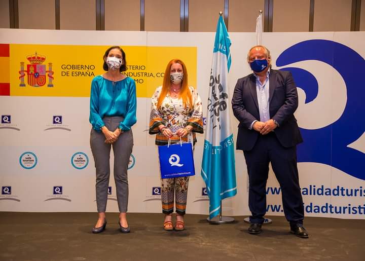 IMG-20210630-WA0068En un acto celebrado en el hotel VP Plaza España Design de Madrid,  la ministra de Industria, Comercio y Turismo, Reyes Maroto, y el presidente del Instituto para la Calidad Turística Española (ICTE), Miguel Mirones, hicieron entrega a la alcaldesa de Salobreña, M.ª Eugenia Rufino,  de las banderas de Q de calidad y Safe Tourism Certified.