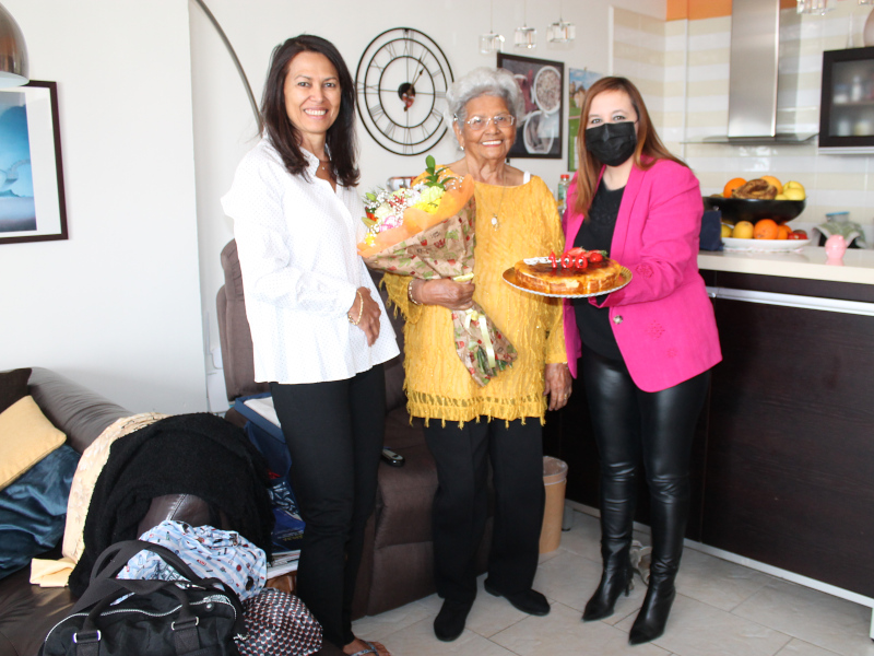 Como es habitual, Mª José García, se ha desplazado hasta su domicilio para felicitarla en nombre de todo el municipio y hacerle entrega de un ramo de flores y una una tarta.