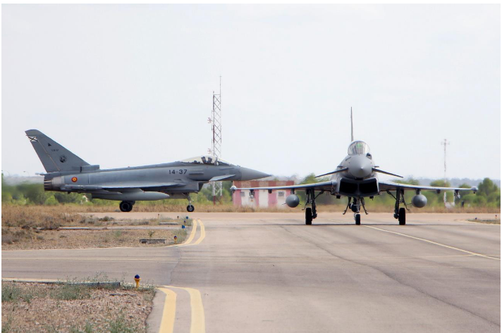 Por parte del Ejército del Aire y del Espacio participarán seis Eurofighter C. 16 del Ala 14 (Albacete) en misión QRA (Quick Reaction Alert). Para llevar a cabo las funciones asignadas de vigilancia aérea, un total de 56 militares de esta unidad, entre tripulaciones y personal de mantenimiento y apoyo, desplegarán en la base aérea de Málaga. A su vez, el Grupo Central de Mando y Control (GRUCEMAC), ubicado en la base aérea de