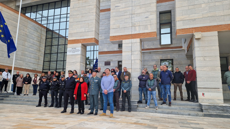 El Ayuntamiento de Salobreña, junto a miembros de la Guardia Civil y la Policía Local, han guardado un minuto de silencio por el asesinato de los dos agentes de la Guardia Civil en acto de servicio ocurrido el pasado 9 de febrero en Barbate cuando realizaban tareas de lucha contra el narcotráfico.