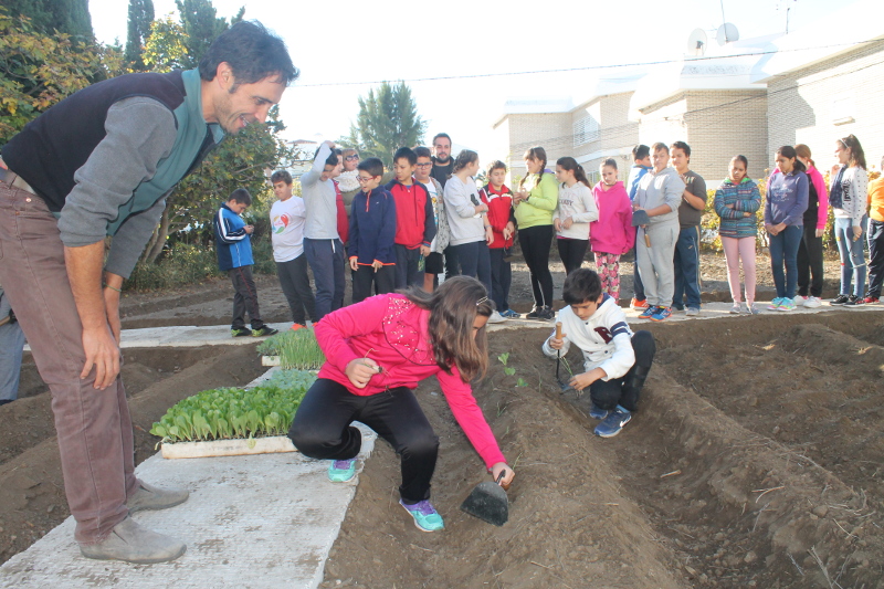 Azada en mano, alumnos del colegio Mayor Zaragoza han dedicado parte de la jornada escolar a plantar lechugas, cebolletas, coliflores,..etc en el huerto que se ha acondicionado en unos terrenos situados un ángulo del recinto. Una forma divertida y educativa de comprender todo el ciclo de la agricultura y nuestra responsabilidad en la conservación del medio ambiente mediante la reducción de los residuos orgánicos con el método del compostaje.