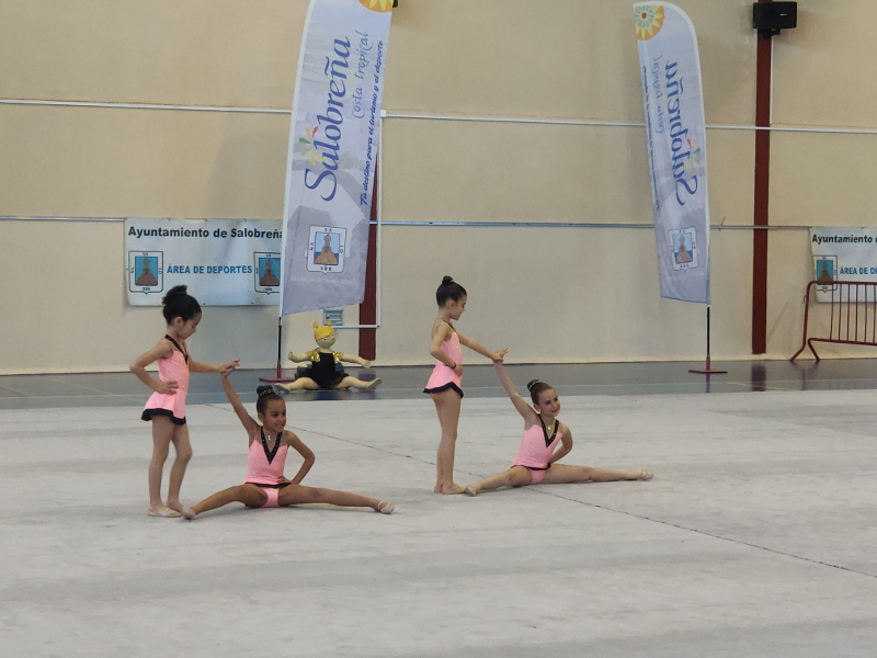 La Escuela Municipal de Gimnasia Rítmica de Salobreña ha celebrado este viernes la tradicional exhibición que cada año reúne a los distintos conjuntos en el pabellón de deportes junto a sus familias para poner sobre el tapiz algunas de las coreografías que vienen preparando durante el curso.