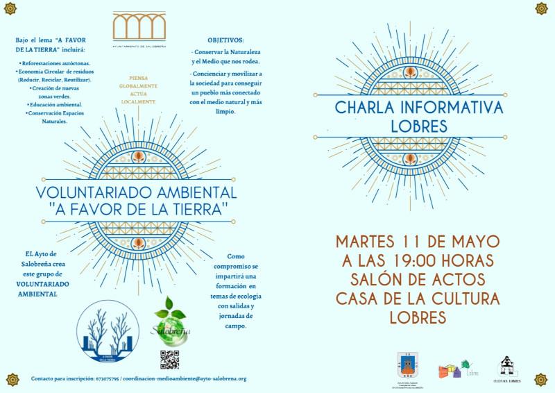 Se llevará a cabo el martes 11 de mayo a las 19:00 horas en el salón de actos de la Casa de la Cultura de Lobres. La charla informativa será impartida por Olmo Nieto Jiménez, coordinador de Medio Ambiente y Parques y jardines del Ayuntamiento.